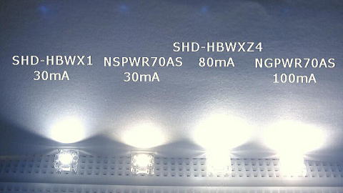 FluxLED 白 4個比較![]() 比べるとNSPWR70ASでさえ暗く感じますね・・・。 NGPWR70ASはとにかく明るい!! びっくりです。4チップより明るいですね。 |