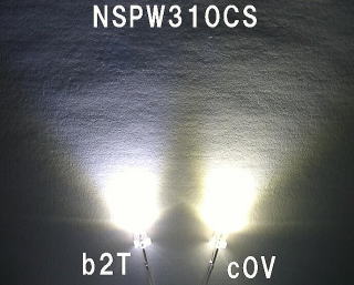 310CS 比較![]() 比較すると、b2Tは見た目、「すっきりした白」となります。デジカメだと多少青が大げさに写りますね。 c0Vは「ほんの少し電球色に近い白」です。これまた黄色っぽいのが大げさに写ります。 これは見る角度にもよりますので、上記画像は参考程度にお考えください。 明るさはもちろんVランクの勝ちです。 |