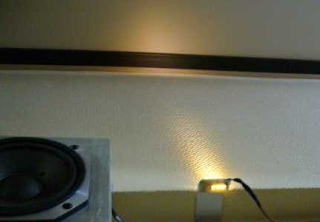 オーディオ機器のライトアップは、電球色LEDを拡散加工して、壁に照射しました。