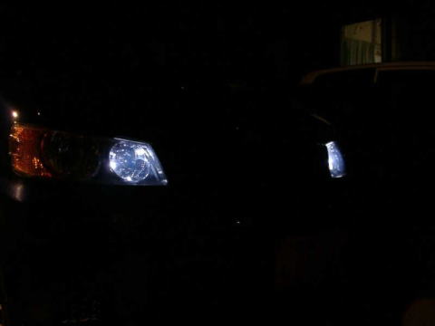 ![]() 全体と してみればこうなります。 純白っていいですよ〜。青みかかったポジションは車検通りませんし。 クリアレンズの車でここまで拡散するんですよ。 斜めから見て点いているんだかどうだか分からないLEDを 付けている車も多いですが・・・。もう文句ないですよね? |